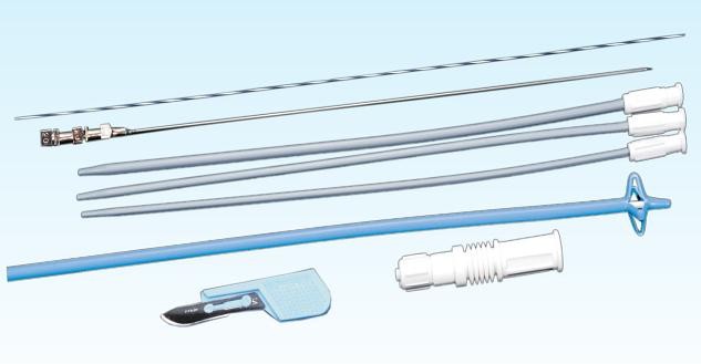 Souprava obsahuje punční jehlu, vodicí drát, dilatátory, katétr typu "pigtail", skalpel a konektor k jímacímu sáčku na moč.